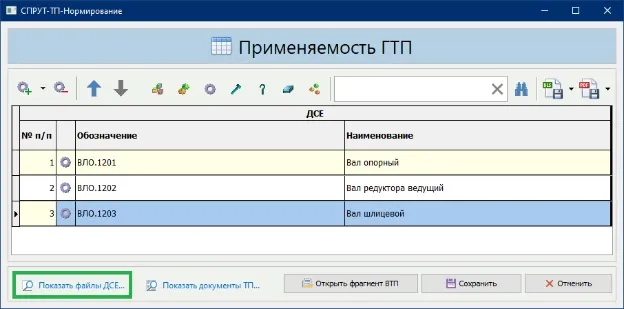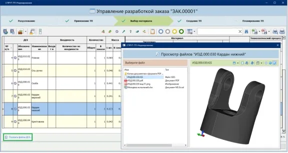 Управление разработкой заказа. В окне Управление разработкой заказа кнопка «Показать файлы ДСЕ…» добавлена на этапах:
